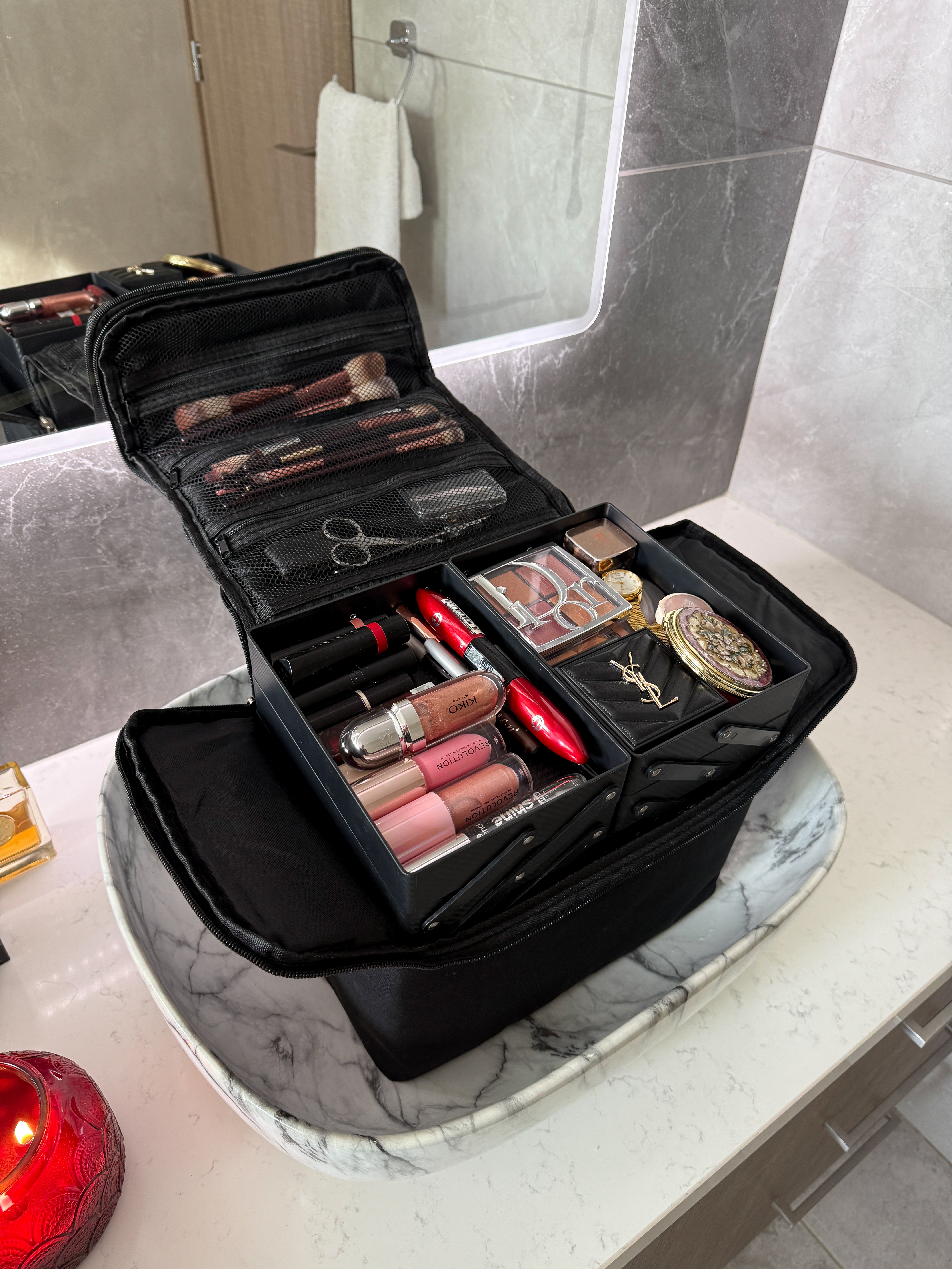 The travel makeup case designed for women with FULL beauty rituals.